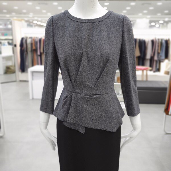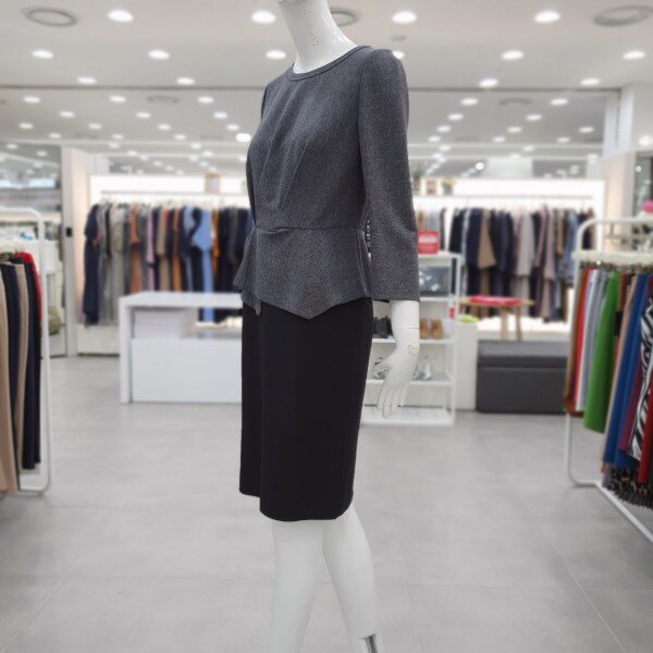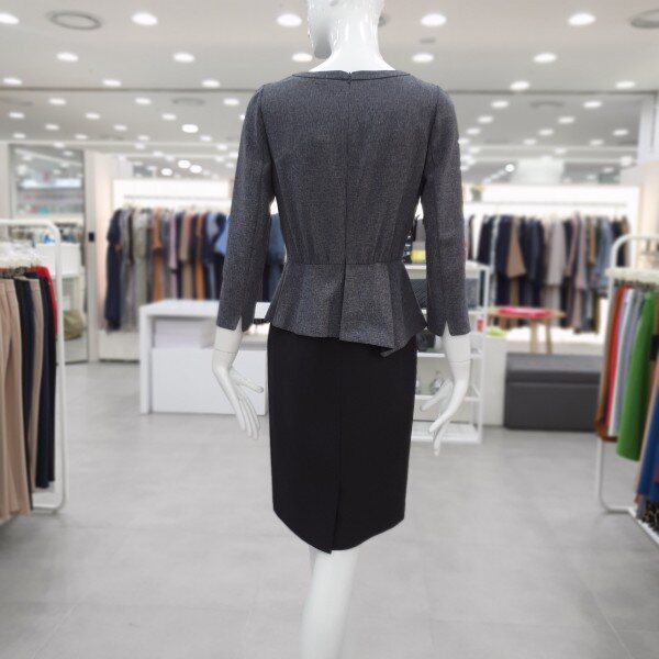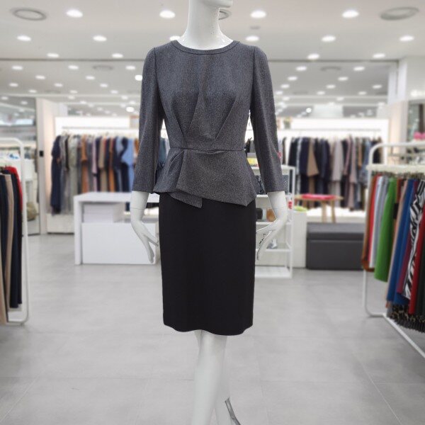 주름이 잡힌 페플럼 실루엣으로 우아하면서 페미닌한 감성을 즐길 수 있는 원피스입니다 블라우스와 스커트 배색 디자인으로 후면 지퍼 구성으로 탈착의가 간편합니다