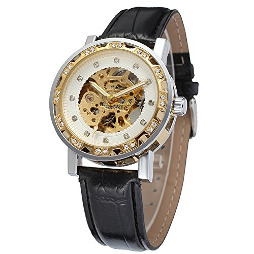-. Title : BesTn 腕時計 男女 自動巻き スケルトン アンティーク風 革バンド H139 ゴールド
