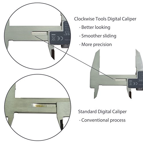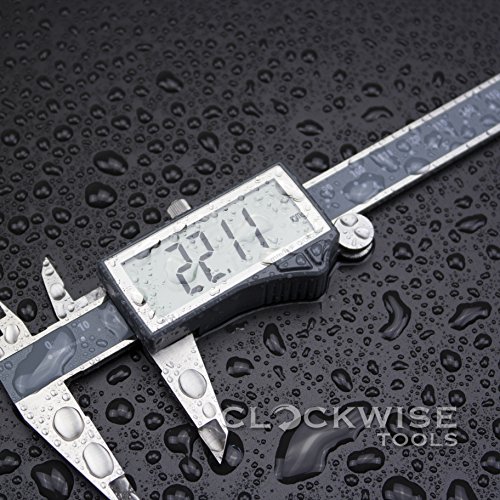 Clockwise Tools DCLR-0605 Electronic Digital Caliper Inch/Metric/Fractions Conversion IP54 Protection 0-6 Inch/150 mm Stainless Steel Body Super Large LCD Screen Auto Off Featured Measuring Tool