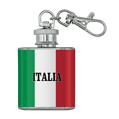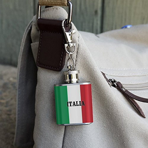 -. Feature : You never know when you might need a pick-me-up swig of your favorite beverage. Stay prepared on the go with this super convenient keychain flask. Whether you're on the hunt for the perfect gift for your BFF, or just looking to keep an emergency supply of liquid courage on hand, you can't go wrong with this sturdy, convenient, fantastic keychain flask. / Durable enough to travel with you throughout the day, while the cap screws on tight for leak-free performance. The printed and laminated graphic wrap adds color and character to the metal body. Finally, the heavy-duty trigger-snap style clip will keep this firmly secured to your keyring, belt loop, backpack, or lanyard. / Made of stainless steel. Flask will hold 1 ounce of your favorite beverage. / The distinctive Italian tri-color flag with 'Italia' imprinted on top is a reminder of home, a place you yearn to travel, or your favorite cuisine. Pasta anyone? / A Graphics and More product.