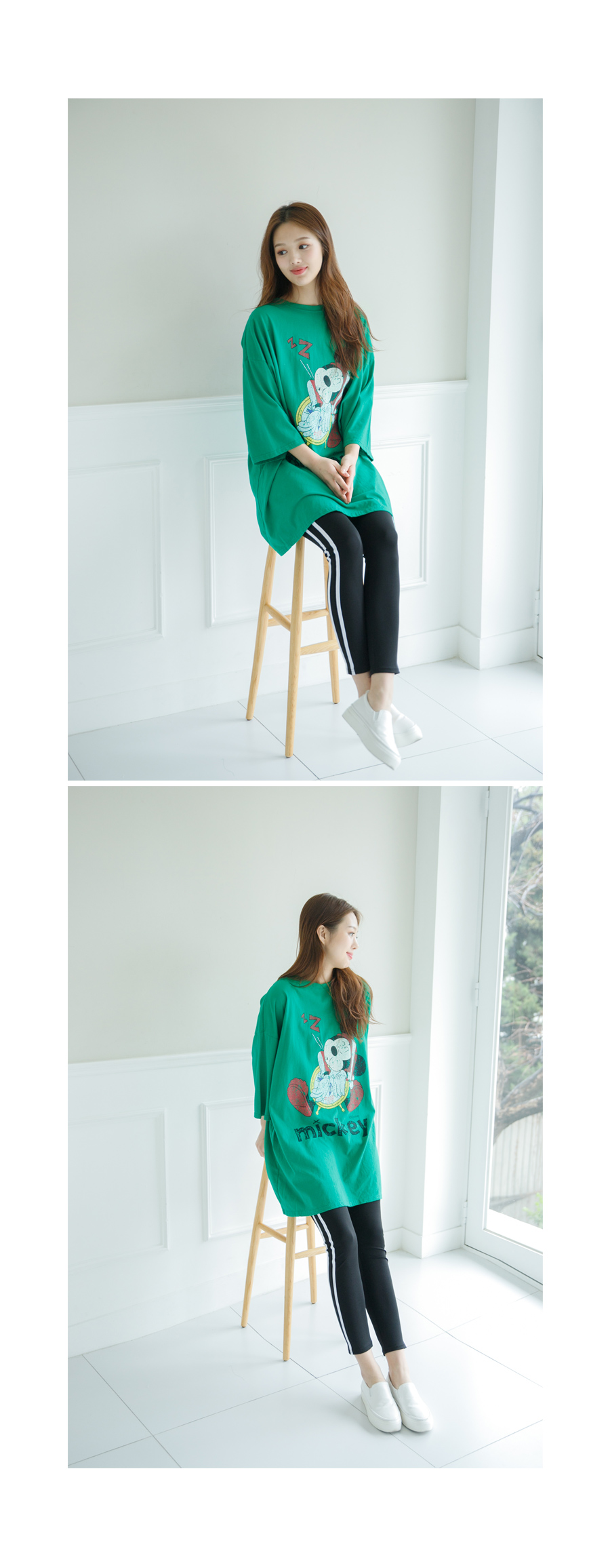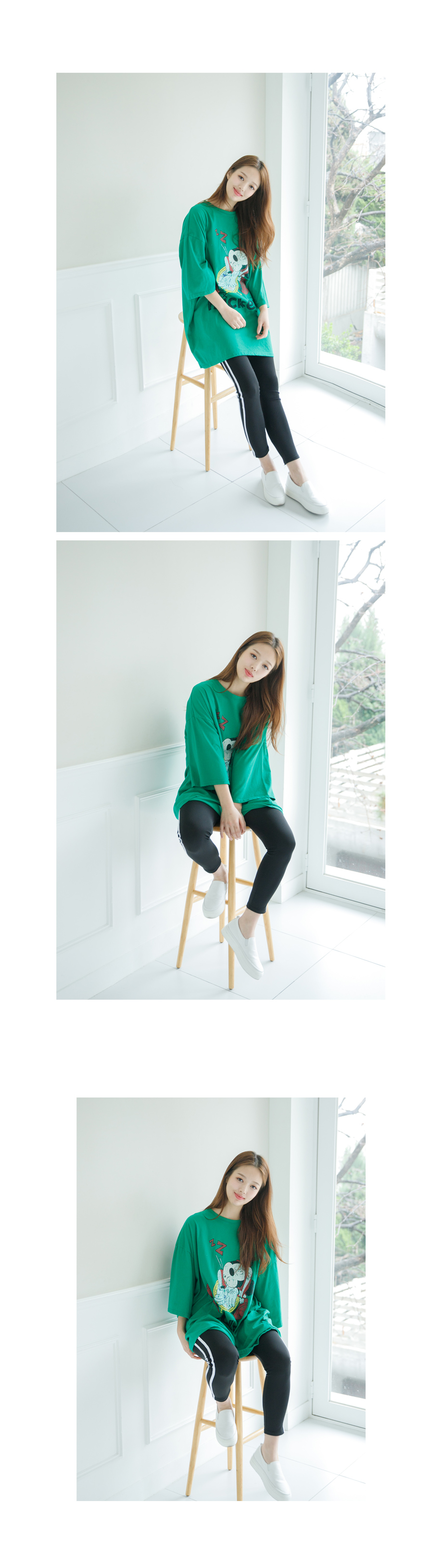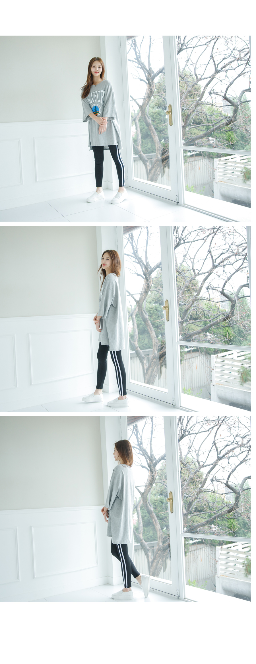 폴리, 스판 혼방소재로 소프트한 터치감은 물론 짱짱한 신축성으로 입은 듯 안 입은 듯 착용감도 정말 편안해요^^ 사이드 라인에 2줄 배색 테잎을 트리밍해주어 레그라인은 날씬해 보이면서 깔끔하게 포인트 되었어요~ 160cm 기준으로 발 끝선정도 오는 길이입니다