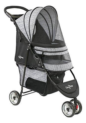 -. Feature : STYLE AND CONVENIENCE: The perfect combination of mobility and style, the Regal Plus Pet Stroller offers your dog or cat the luxury of three wheels (traditionally reserved for larger, more expensive models) in an affordable, convenient stroller. / COMFORTABLY RELAXED PET: The Regal Plus Pet Stroller will hold a dog or cat up to 25 pounds and has numerous little touches for extra convenience. The front convertible wheel swivels on smooth surfaces or locks on rough surfaces for easy traveling, while the extra storage pouches are perfect for your water bottle and other accessories. / TONS OF SMART FEATURES: The Regal Plus Pet Stroller includes three of our exclusive Smart-Features components. The Smart-Canopy folds up under the canopy hood (instead of into the pet compartment), giving your dog or cat more space. / WALK AT ANY PACE: The 38" Smart-Reach handle, compared to similarly-sized strollers, provides a greater amount of kick space for convenient walking at any pace. The Smart-Basket safely stores your belongings with a rear zipper for easy access. / PRODUCT SPECIFICATIONS: Package contains (1) Gen7Pets Regal Plus Pet Stroller. Maximum Pet Weight: 25 lbs. Interior Dimensions: 22" long x 11" wide x 21.5" high. Stroller Weight: 11 lbs. Overall Dimensions: 38" long x 17" wide x 38" high. Colors: Gray Shadow, Raspberry Sorbet, Starry Night.