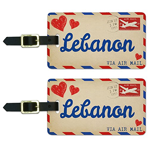 (Graphics and More)/Accessories/Luggage, Bags Travel/DIRECT FROM USA/Air Mail Postcard Love for Lebanon Luggage Suitcase Carry-On ID Tags Set of 2