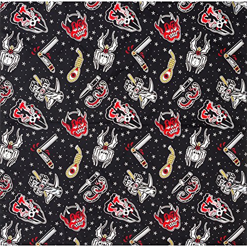 Studio : Sourpuss Publisher : Sourpuss Binding : Apparel Product Description Friday The 13th Rosie Scarf Black By Sourpuss. Add some extra oomph to any outfit with this traditional tattoo-style, Friday the 13th patterned Rosie Scarf. Bandana-sized, it's great for your hair or to tie around your neck without too much bulk. Dimensions: 21" x 21". 100% polyester. 0