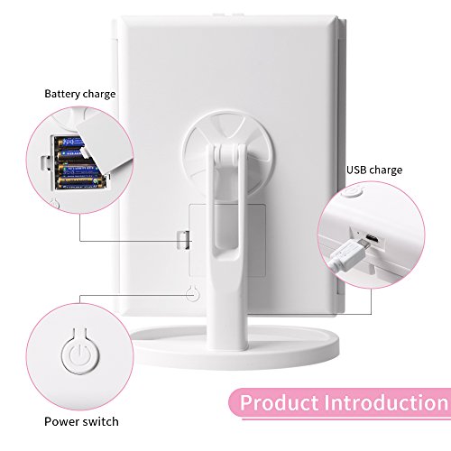 - Two Options of Power Supply: The vanity mirror powered by 4 AAA batteries and USB charging. (battery not included, USB cord included). The USB charging can connect the computer when it needs charging. It is more convenient to charge. You can freely choose the way of charging according to your condition.