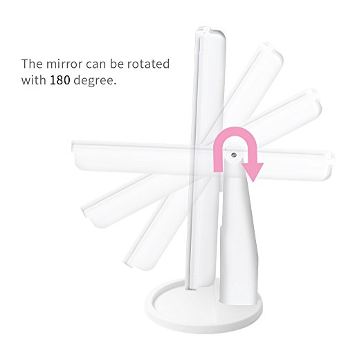 - 180-degree Free Rotation: The lighted makeup mirror stands on base recess can be freely adjustable to tilt up or down, fix at any position to give you the comfortable and perfect viewing angle. It can be folded like a book size to save room while you needn't use. More lightweight and smaller than other bulky mirror in markets. You can put your little jewelry in this round stand, such as earrings, lipstick, rings and etc. The best choose for our travel.