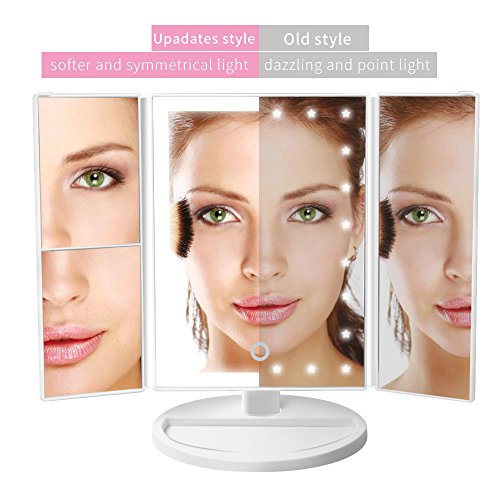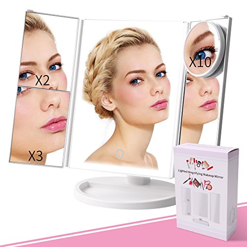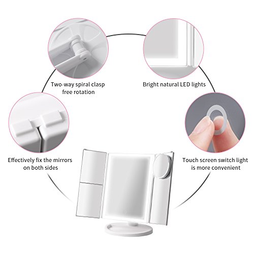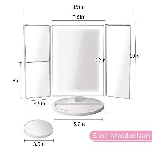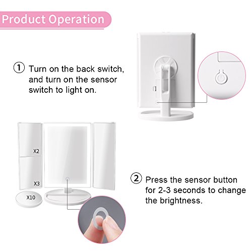 - Three Panel with 3X Magnification: Our makeup mirror has 1x/2x/3x /10x magnifying mirror (including 1pc 10x circular mirror) and provide you more wide-angle viewing and help you see even the face features clearly while doing your makeup, it shows all your look in all directions and fits all your makeup needs. The trifold design also can protect it away from the dust or scratches.
