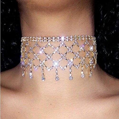 1X?Women Punk Style Alloy Crystal Rhinestone Golden Chain Necklace Choker 0