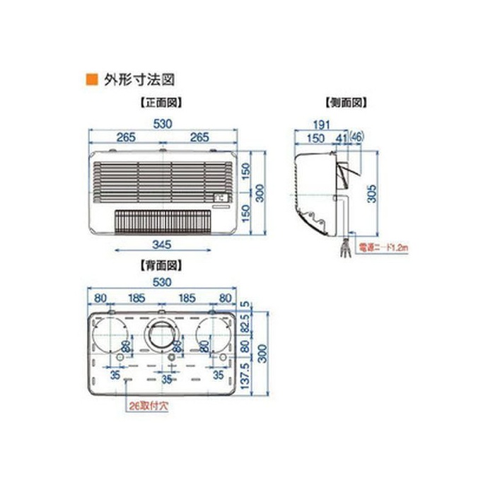 설치 가능 개구 치수:각혈100×100-250×480mm(※전원 코드 개구 접속 공사가 필요한 경우 있음.)