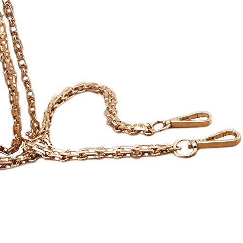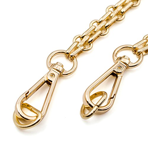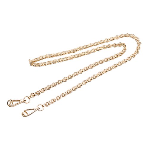 Material: Metal. Color: Gold Size 1: 15.5" length approx, Size 2: 46.5" length approx (including snap hooks). Width: 0.45" approx. This high quality replacement metal shoulder strap is a practical and versatile accessory which will fit on almost any type of bag. It is suitable for using it on your own creations or as replacements for a much loved ready made bag.