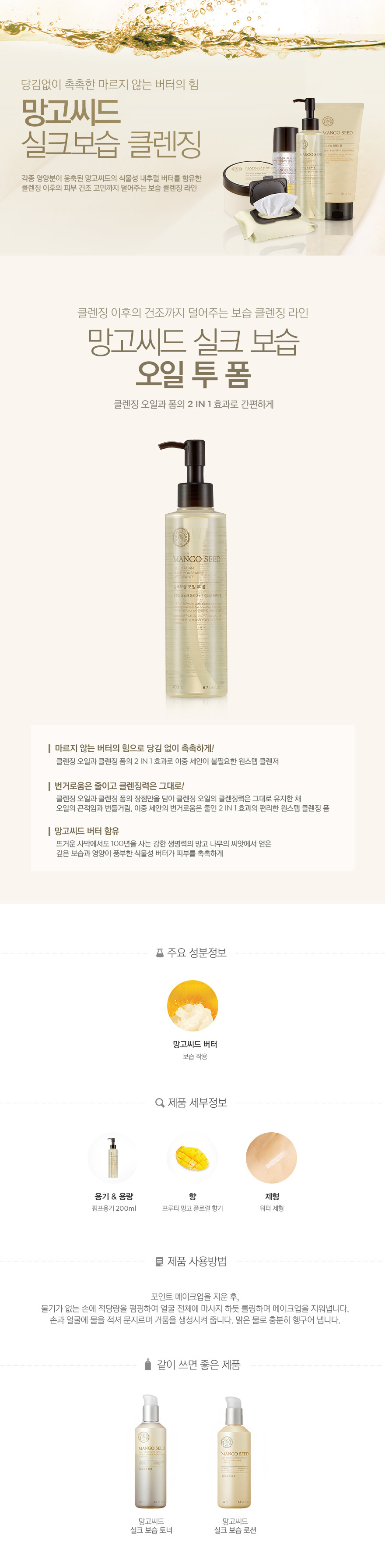 Moisturizing cleansing line to relieve dry skin after cleansing and concerns of containing the mango seed butter, condensed natural plant nutrients, various