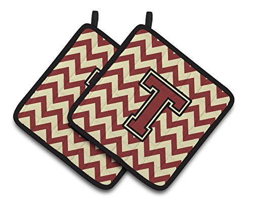 Caroline's Treasures Letter T Chevron Maroon & Gold Pair of Pot Holders CJ1061-TPTHD, 7.5HX7.5W, Multicolor
