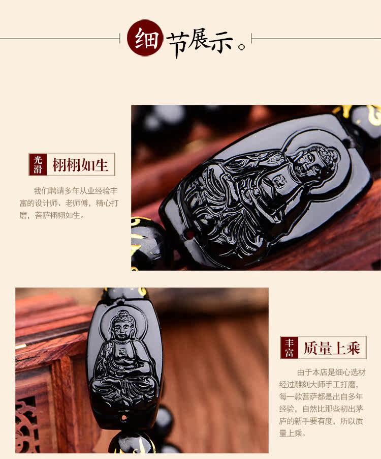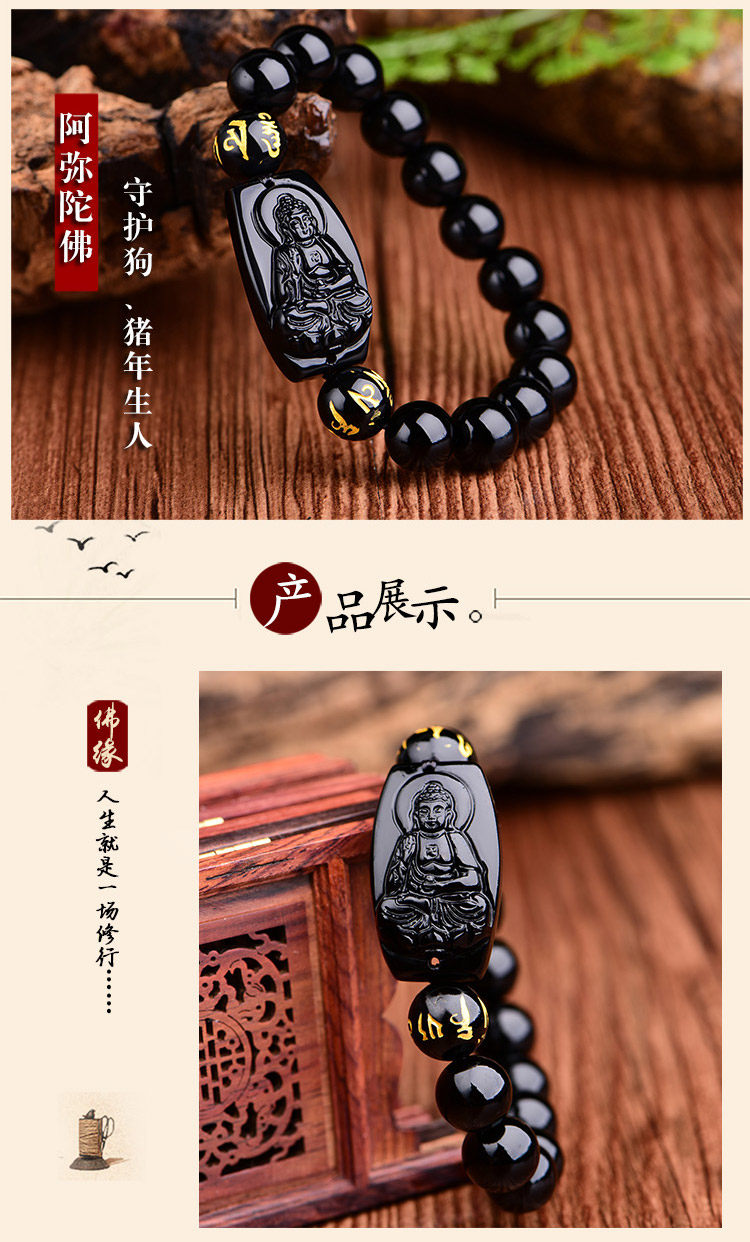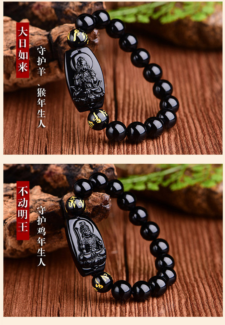 黑曜石本命佛守护神佛牌 Natal Buddha Bracelet 10mm