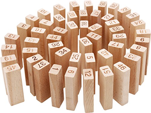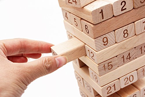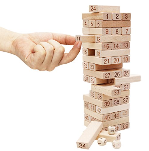 - Feature : This Is The Latest Updated Jenga Game,Matching With A Mallet And 4 Pieces Dices . 51 Pieces Precision Cut, High Quality, Beech Wood Blocks / Sturdy Box For Easy Storage And Transport / Pull Out A Bock Without Crashing The Stack To Win At Jenga, Packing with mallet,enjoy more interesting / Made Using Safe Materials,Each Blocks Printed Number / Win By Being The Last Player To Remove A Block Without Causing The Stack To Crash