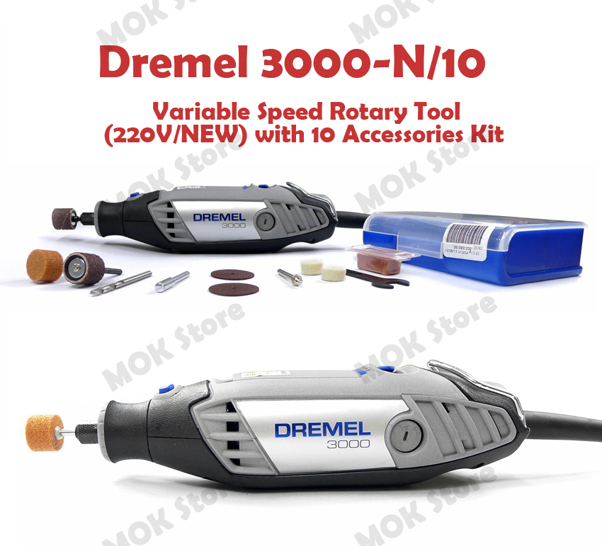 Dremel 3000-N/10 Variable Speed Rotary Tool (220V/NEW) with 10 Accessories Kit