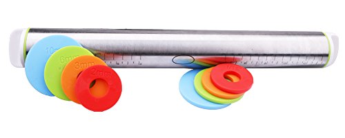 Katkitchen Adjustable Rolling Pin, Stainless Steel Dough Roller Stick with Thickness Rings