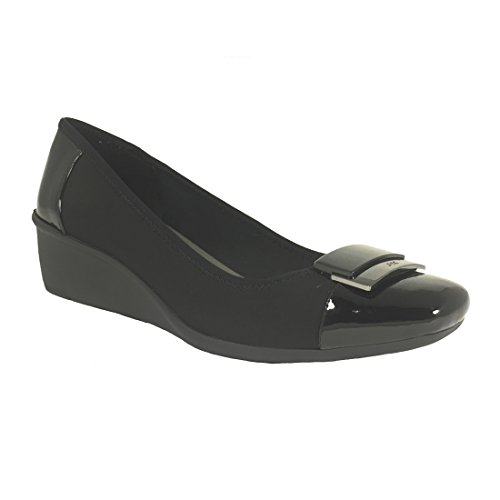 -. Binding : Apparel -. Brand : Anne Klein -. Department : womens -. Feature : fabric / rubber sole / Heel measures approximately 2 inches" / Lightweight foam layers provide cushioned walking and shock absorption in every step / Round-toe sport wedges with buckle detail -. Model : Waverly -. ProductGroup : Shoes -. ProductTypeName : SHOES -. Title : Anne Klein Women's 'Waverly' Wedge Pump