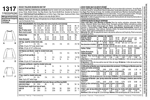 -. Title : Simplicity Creative Patterns 1317 Misses' Pullover Knit Top Sewing Patterns, Size A (XXS-XS-S-M-L-XL-XXL)