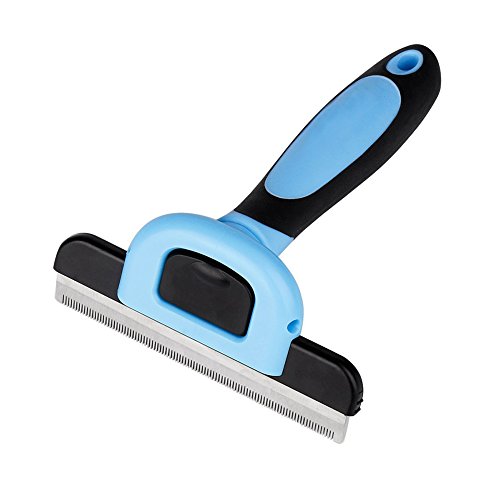 Pet DeShedding Tool & Grooming Brush for Pet's Short & Long Hair ,PIPITAO Stainless Steel Hair Removal Comb with Safety Blade Suitable for Small, Medium & Large Dogs + Cats (Small, Blue)
