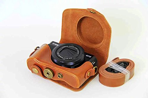 -. Title : Clanmou G7 X MarkII Protective Leather Camera Case Bag for Canon PowerShot G7 X Digital Camera with Camera Shoulder Strap Brown