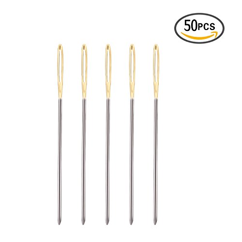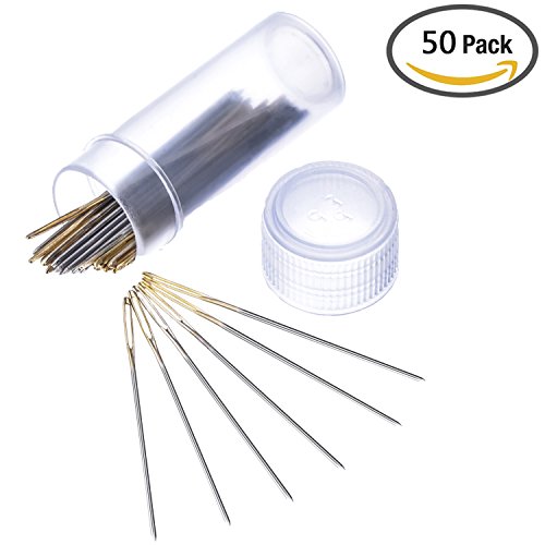 - Gold eye embroidery needles: each needle length is 1.43 inch, 50 pack in a bottle; The hardness of steel was obtained through high temperature treatment making the needle hard to break or bend