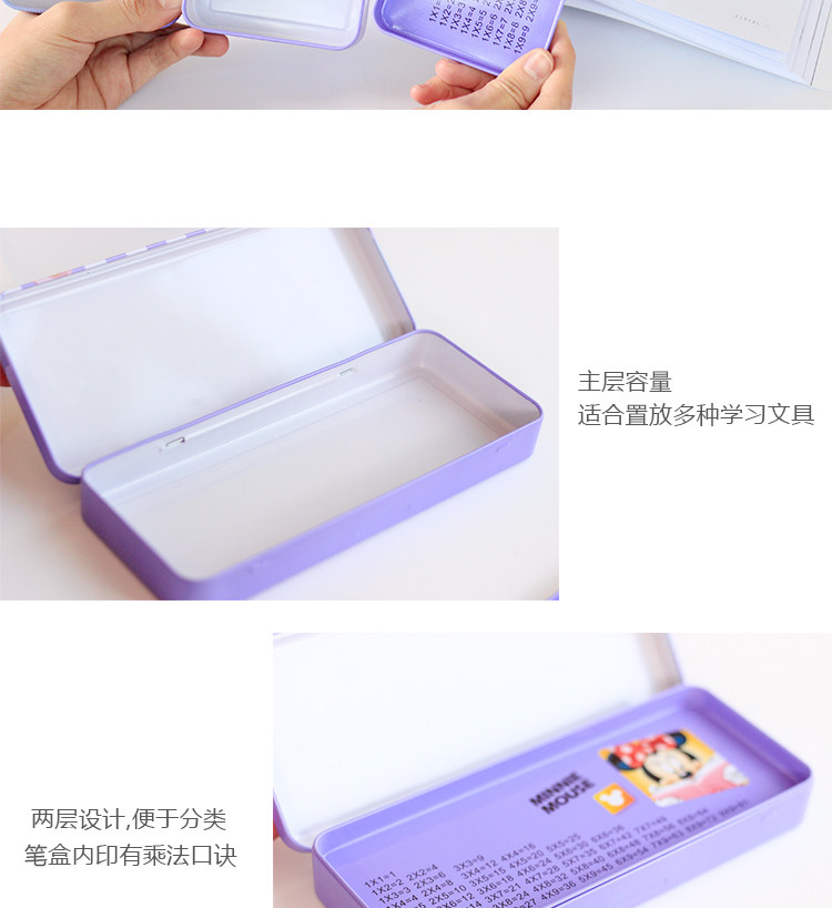 小学生多功能文具盒 男女笔盒铁盒 双层铅笔盒 乘法表