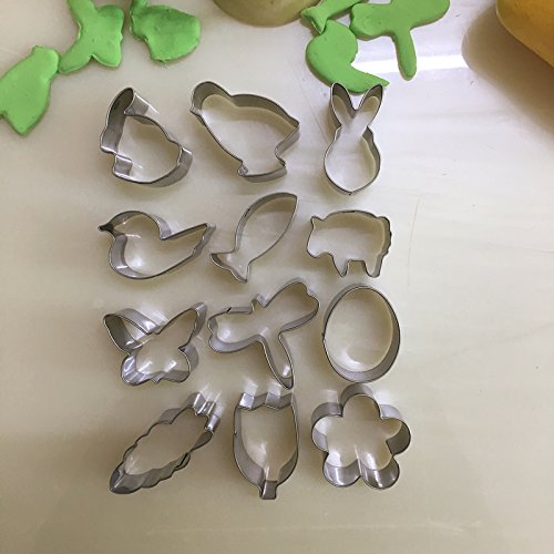 Hraindrop Premium Mini Animal Cookie Cutters - Goldfish,dragonfly,rhinoceros,rose,egg,flower,radish,Butterfly,rabbit,penguin,bird,fox Cookie Cutter(12pieces)