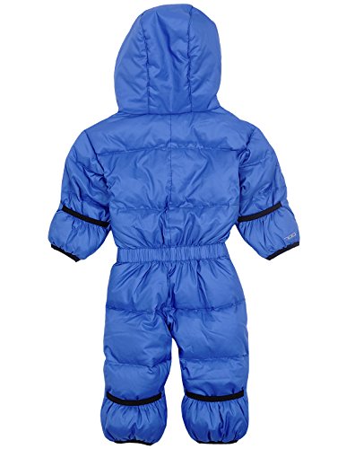 Molehill's Summit Down Bunting Suits are the warmest insulated suits on the market. The 80/20 fill of goose down and feathers (700 goose down fill power) provides the perfect insulation for those really cold environments. Our micro rip-stop polyester exteriors give the needed toughness. Shells feature durable water repellent (DWR) down proof recyled polyester which helps to repel moisture. Cuffs (sleeves/legs) and waist (back only) are elastic to offer versatility and a better fit. Interior Lycra wrist and ankle gaskets promote added warmth. Fold over hands and feet eliminate the need for mittens and booties on quick trips out. Molehill logo on left chest. Fully insulated non-removable hoodie. Zippered front with reinforced zipper flap to seal out the wind. This is the perfect boys and girls down bunting suit for the coldest environments like snow. These down suits for infants and toddlers are only available in sizes 3/9 mos up to 3T. ABOUT MOLEHILL MT. EQUIPMENT: Since 1994, Molehill Mt. Equipment has concentrated on offering the highest quality infant, toddler, and junior apparel reminiscent of the top quality products from the adult outdoor sporting goods industry. Our apparel lines stress a layering concept and offer technical fabrics and functional features. PLEASE BE AWARE THAT DUE TO LIGHTING, THE COLOR OF SOME GARMENTS MAY APPEAR DARKER/LIGHTER IN PERSON THAN THEY MIGHT APPEAR ON YOUR MONITOR SCREEN.Feature