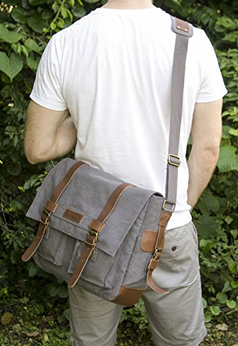 STYLE: Retro Military Mens Army Outdoor Shoulder School College Faux Leather Travel Accessories. For all Apple Macbook Pro and Air, Ultrabooks, Notebook PCs, Laptop Computers, Netbooks - 10, 11, 11.6, 12, 13, 13.3, 14, 14.7, 15, 15.4, 15.6 inches.