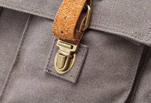 MATERIALS: Made of thick 100% cotton canvas, vegan leather accents, and metal pieces. Includes a rugged metal top zipper along with strong snap buttons for the front pockets.