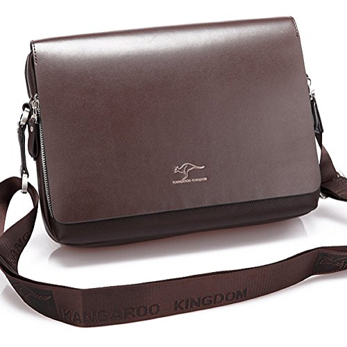 -. Title : Pixnor Men's Shoulder Bag PU Kangaroo Kingdom Messenger Bag Size L Brown
