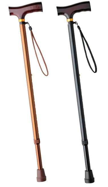 握りやすいグリップで、杖は伸縮式で長さ調節ができます。アルミ製で軽くて丈夫です。