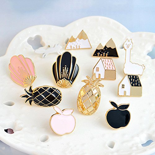 Cartoon Alpaca Pineapple House Enamel Brooch Pin Lapel Pins Set for Women Girls Clothing Bag Ornament