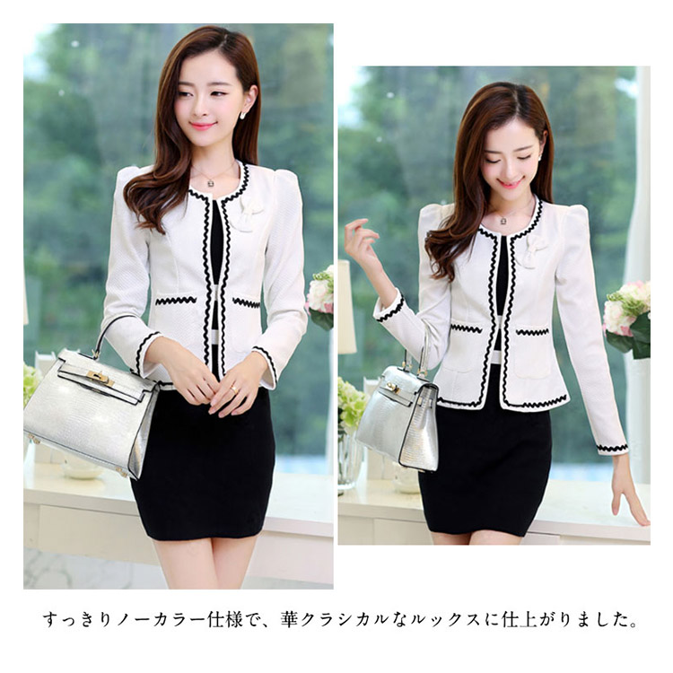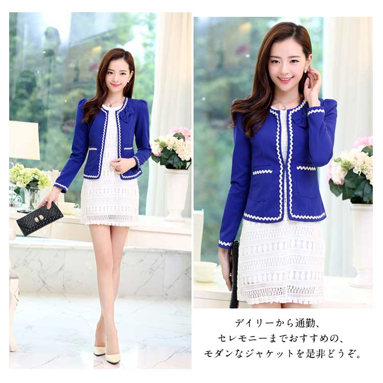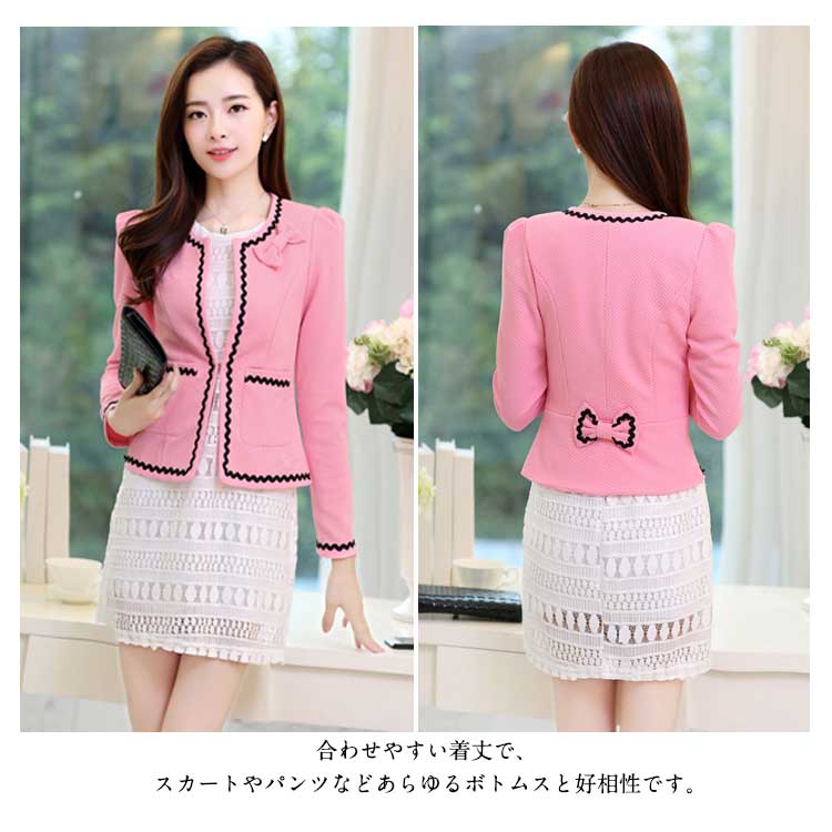| カジュアルにもフォーマルにも着回せる!定番ノーカラージャケットがDebut☆すっきりノーカラー仕様で、華クラシカルなルックスに仕上がりました。合わせやすい着丈で、スカートやパンツなどあらゆるボトムスと好相性です。デイリーから通勤、セレモニーまでおすすめの、モダンなジャケットを是非どうぞ。 | |