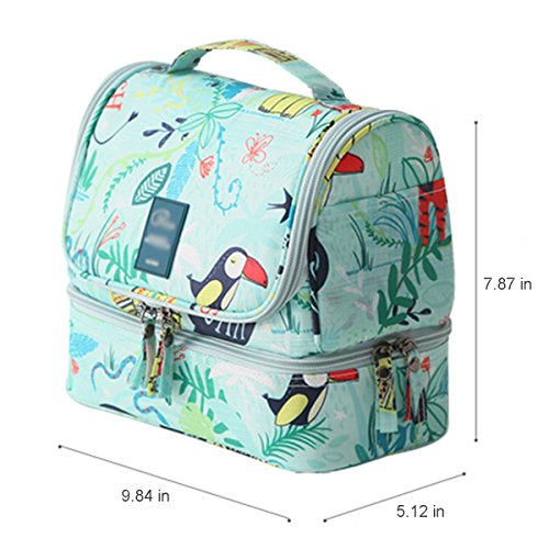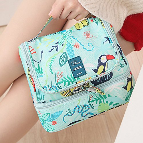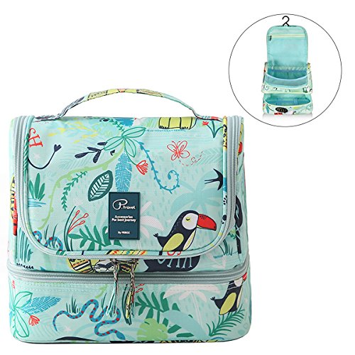 Travel Toiletry Bag Waterproof Portable Hanging with Hook Dual Layer Organizer Storage Brush Home Train Makeup Cosmetic for Women Girls (Animal World)