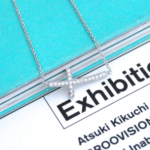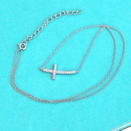 - Title : Sterling Silver Micro Pave Cubic Zirconia CZ Sideways Curved Cross 16" - 18" Necklace