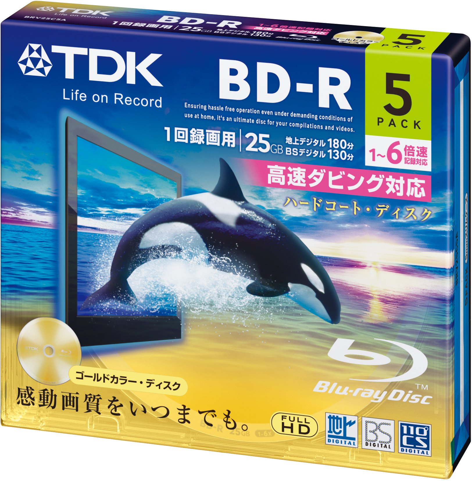 TDK Bluray Disc 25 gb 6x Speed Gold Color HD discs 5 pack in Jewel cases