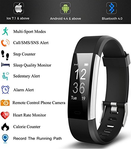 Life Gear Pro HR Plus Bluetooth Fitness Tracker mit Herzfrequenz Monitor Schrittzahler Schlaf Monitor fur Android und IOS mit 2gratis austauschbar Farbe Trager
