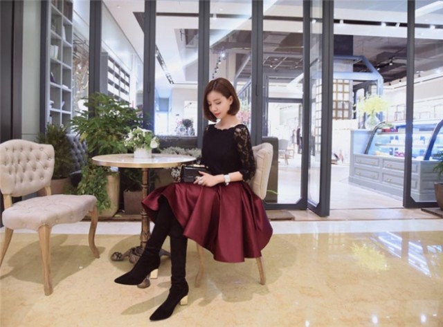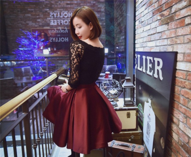 フレアスカートがかわいいエレガントなひざ丈ワンピース☆