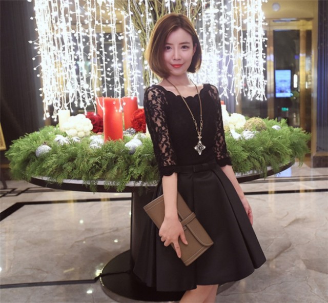 袖口のレースがオシャレで、結婚式や二次会、ディナーショー、お呼ばれに最適!