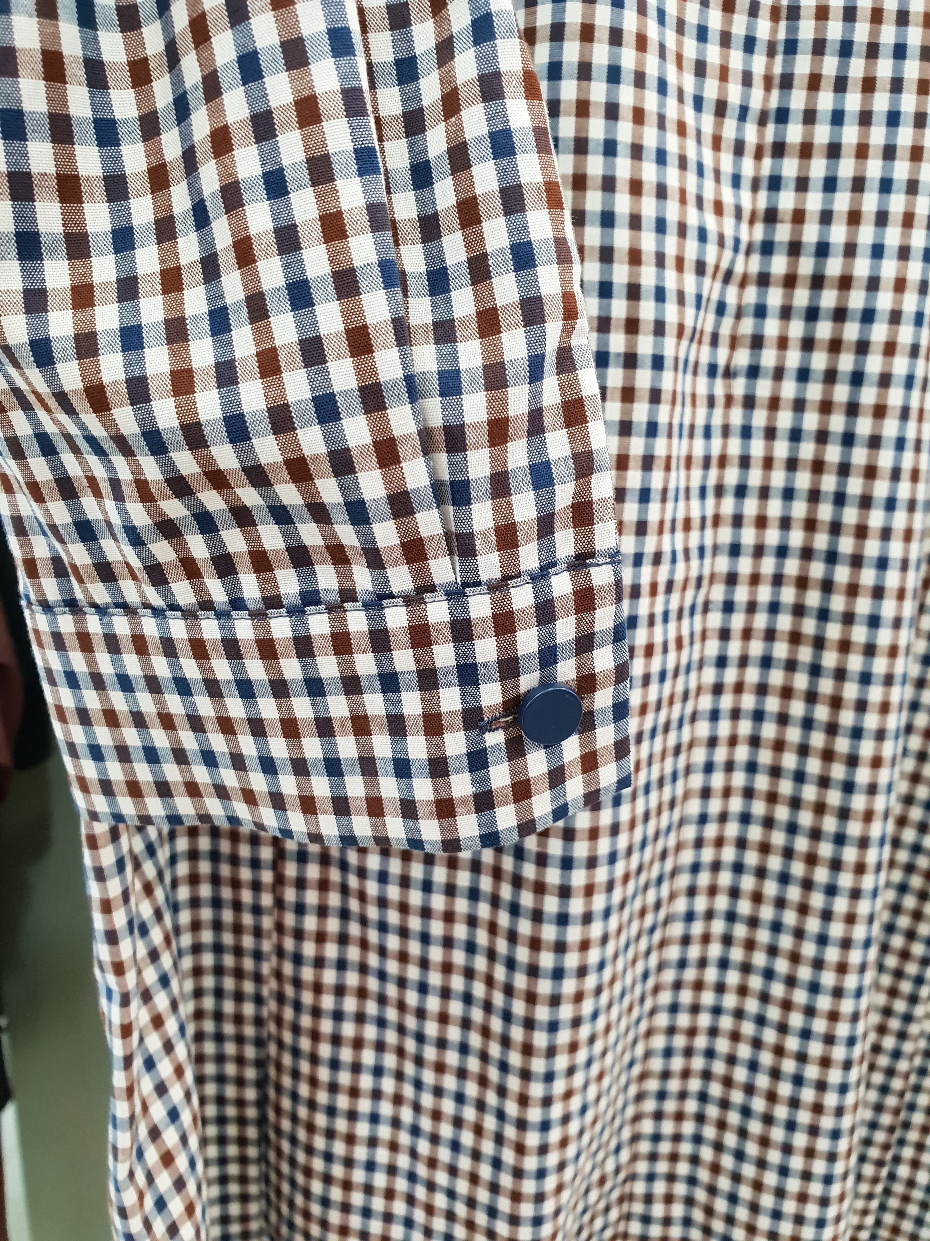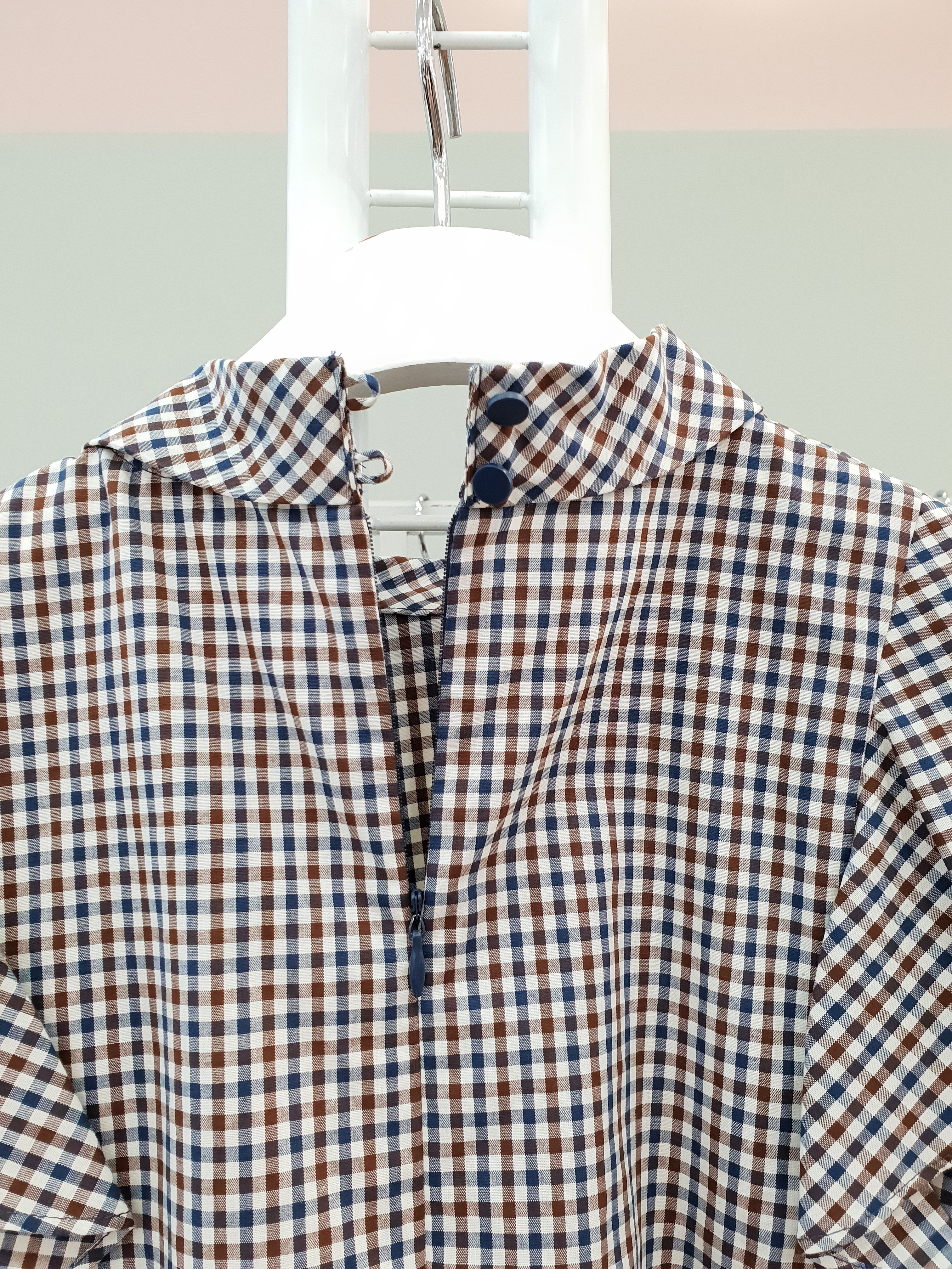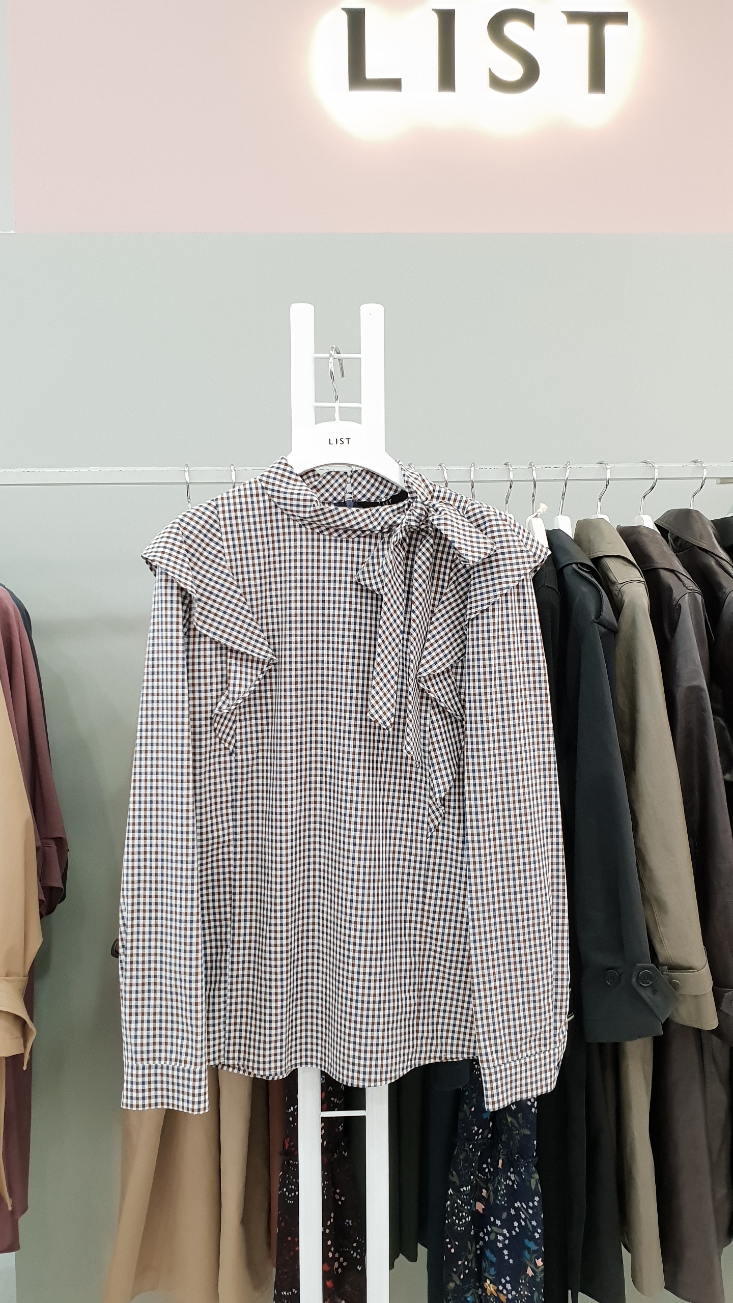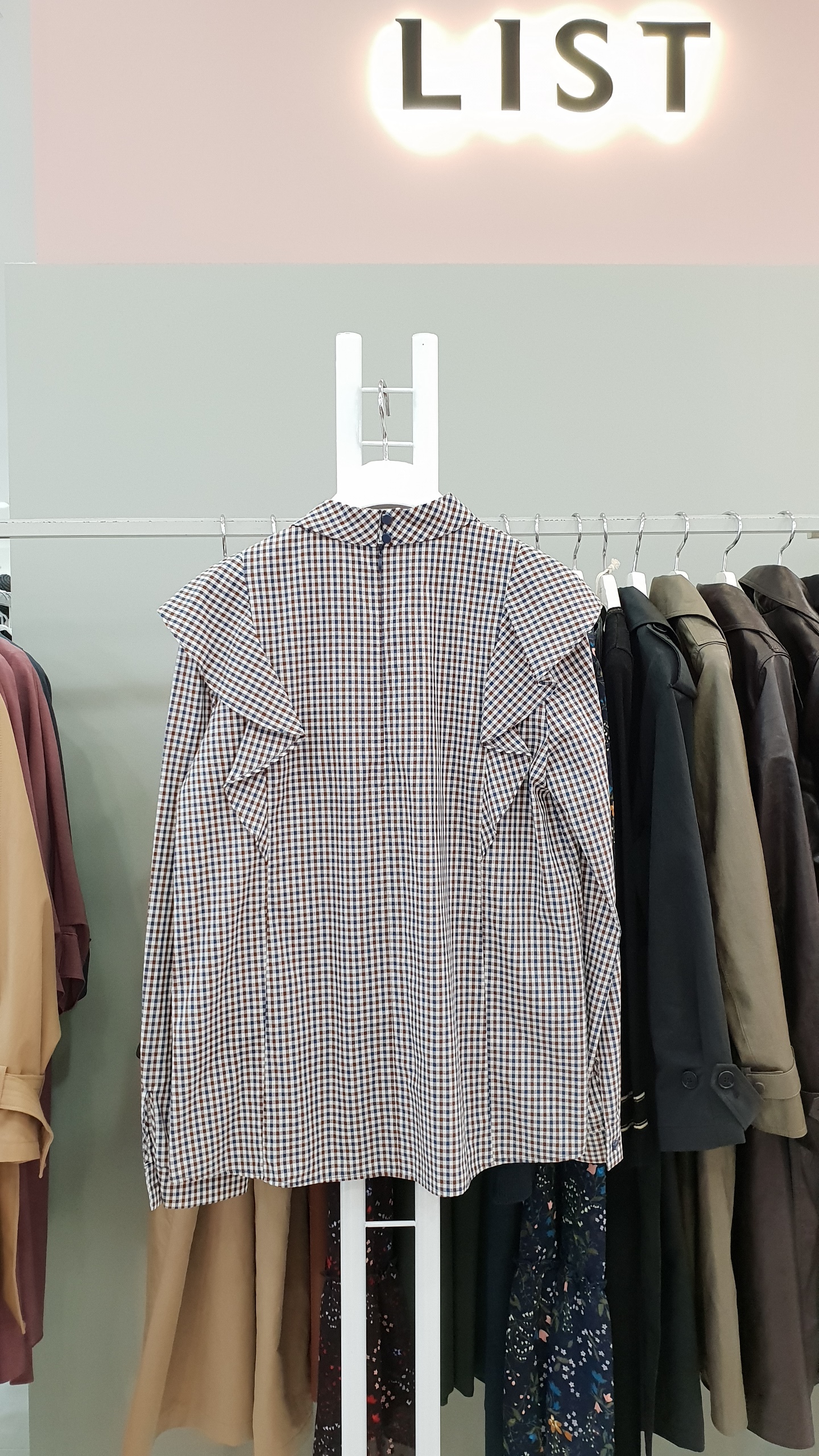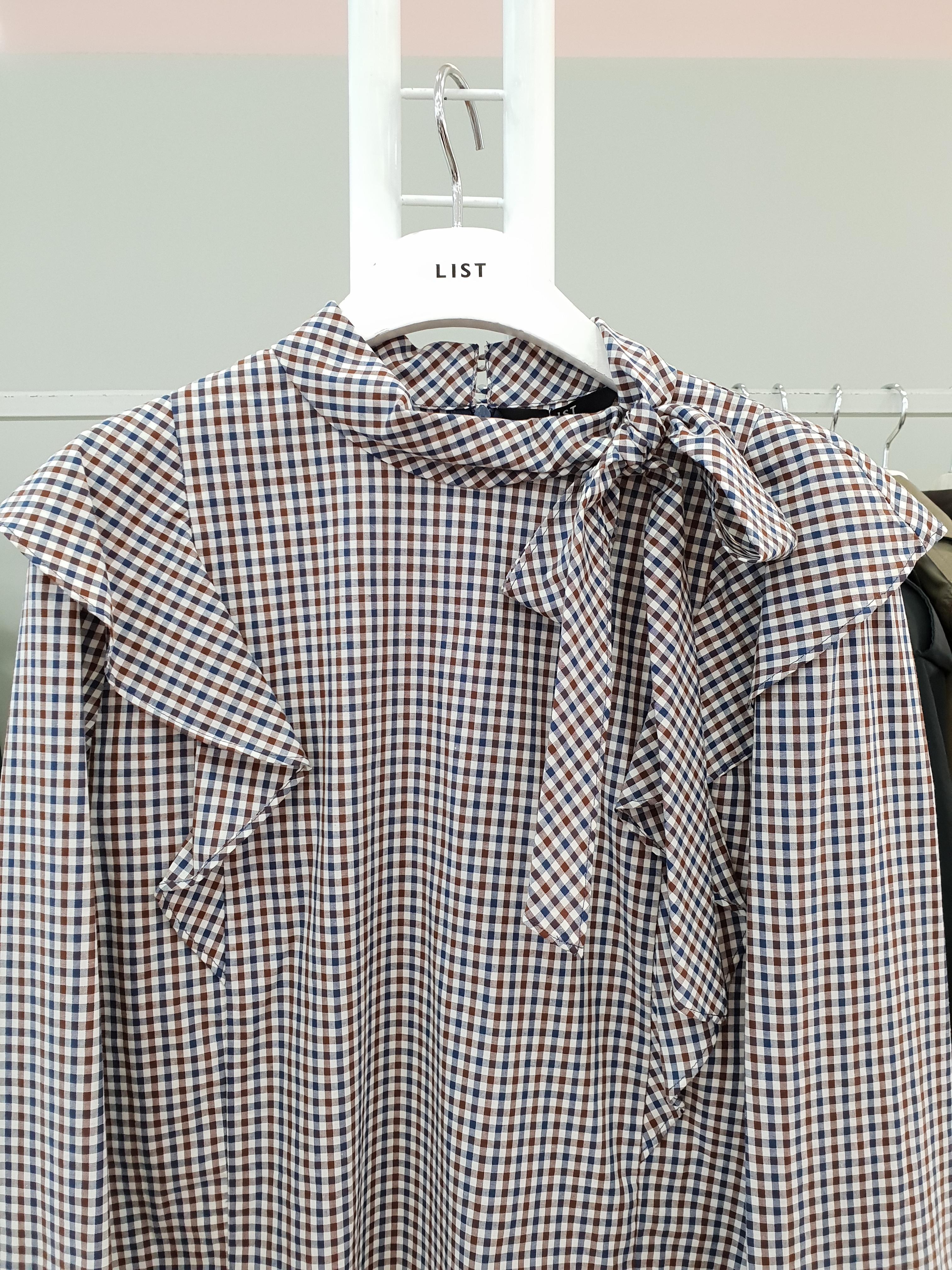 브라운톤의 부드러운 컬러감으로 세련된 분위기의 체크 블라우스 입니다. 프릴포인트와 리본 포인트로 러블리한 분위기로 코디하시기 좋은 아이템 입니다.