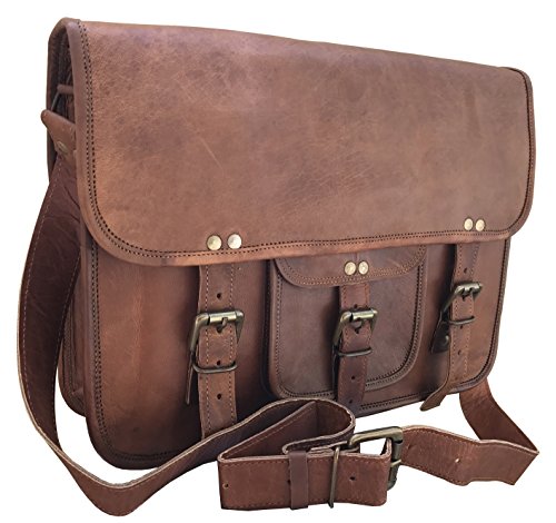 -. Feature : Imported 15 Inch Leather Messenger Bag / Dimensions: (WxHxD) 15 x 11 x 4 in (38 x 28 x 10 cms). Can easily accommodate 14 inch mac air and other laptops. / Three internal compartments. Two zipper pockets. One zipper pocket for mobile etc.. Original handmade leather bag with dark brown color and metal fittings. To increase the darkness of leather oil and sundry it. Naturally treated, strong but supple goat leather and sturdy canvas lining on this inside. / This is perfect to use as a: messenger bag for men leather, messenger bag for women leather, messenger bag leather, leather golf bag, laptop bag leather, leather bags, leather camera bag, leather crossbody bag, leather computer bag, business leather bag, messenger bags leather, leather laptop bag for men / Please note that since this is original leather bag it comes with a distinct smell which fades away after 3-4 weeks of regular use. Also the leather might feel a bit stiff in the starting but it loosens out with usage.