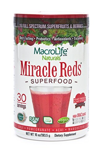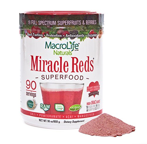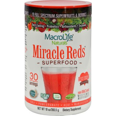Miracle Reds is more than a fruit blend; it contains a wide spectrum of antioxidants for the maintenance of good health. Miracle Reds is fortified with plant sterols, that help lower LDL cholesterol and maintain healthy cholesterol levels. Miracle Reds contains concentrated polyphenols. Provides 1 Billion Probiotic cultures, vitamins, minerals, and enzymes, for good health.