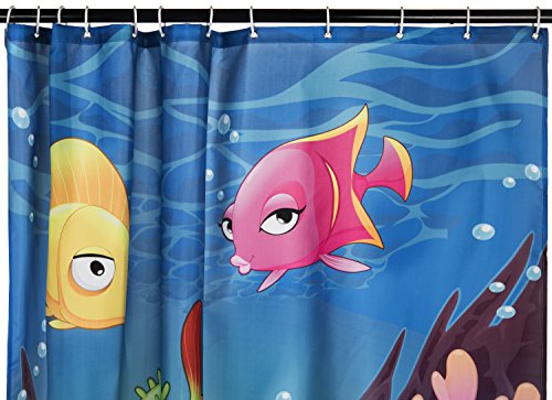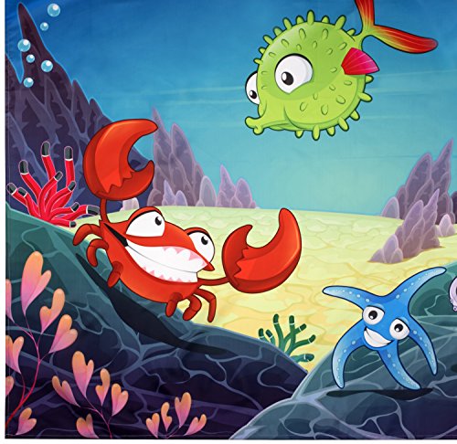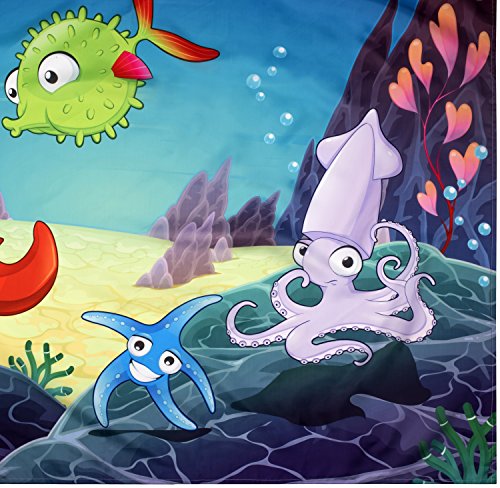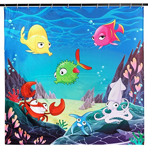 Feature : BEST DESIGN: Unique and colorful design that will entertain your child's imagination. Your child will love the vibrant colors and nautical theme. / PREMIUM QUALITY: Made with 100% polyester. No PEVA or PVC material. High quality digital printing allows for many vibrant colors to be used and increases print longevity. Machine washable and durable. Reinforced buttonholes provide a secure and durable opening for hooks to be installed. Size is 71" (L) x 71" (W). / MILDEW RESISTANT: This shower curtain includes mildew/mold resistant properties that assist in keeping mildew/mold from forming. The product is waterproof which also helps to resist mildew/mold. This is a very low maintenance product which is a desirable feature! / LOW MAINTENANCE: This shower curtain resists creasing and shrinking. Machine washable and can be put in the dryer. It is quick drying seeing polyester does not absorb much moisture. This shower curtain is water proof and repels water. / HOOKS INCLUDED: Package includes 12 plastic hooks.