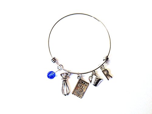 -. Title : Cooking / Cook / Chef themed personalized bracelet. Antique silver charms and a genuine Swarovski birthstone colored element.