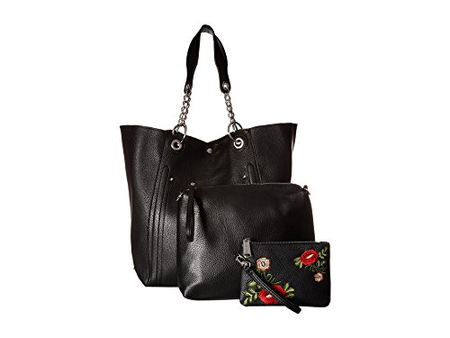 No matter what the day throws at you, be prepared and be in style with this Steve Madden® tote. Faux-leather construction features flat shoulder straps and chain detailing. Magnetic snap closure on the main compartment. Plush interior lining includes a snap-closure strap to secure extra bag. Tote comes with two zippered clutches. Imported. Measurements: Bottom Width: 16 in Depth: 6 1⁄2 in Height: 14 in Strap Length: 19 in Strap Drop: 9 in Weight: 2 lbs 2 oz This product may have a manufacturer's warranty. Please visit the manufacturer's website or contact us at warranty@support.zappos.com for full manufacturer warranty details.Feature