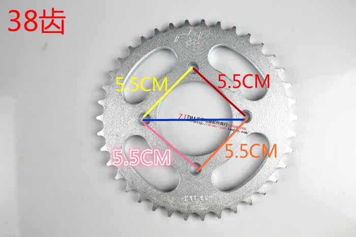 小链轮15齿,后链轮38齿。链条428H加厚型(H型,请知悉---原装是428H型,这个是带H的,但能用,所谓一分价钱分货:价格低)