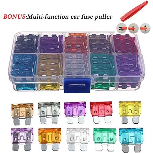 100 Pcs Assorted Auto Car Trunk Standard Blade Fuse 2,3,5,7.5,10,15,20,25,30 35 Amp Car Boat Truck SUV Automotive Replacement Fuses BONUS Multi-function Car Fuse Puller