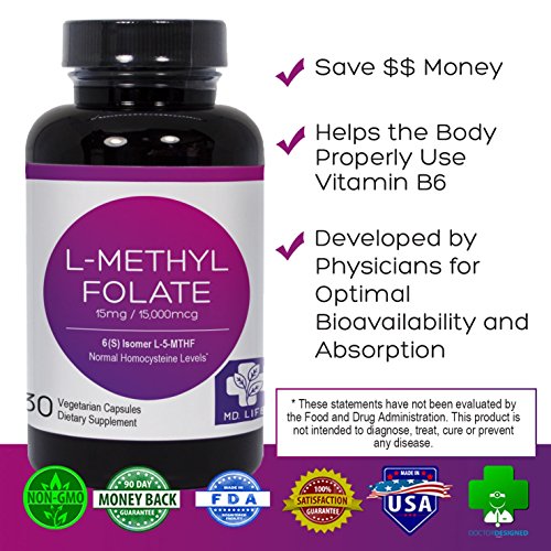 Why You Need MD.LIFETM L-Methyl Folate. Did you know that millions of people worldwide have a genetic variation that impairs their ability to properly utilize Folic Acid (also known as Vitamin B9), and they don't even know they have it? MD.LIFETM L-Methyl Folate has the active ingredients needed to help your body absorb important B Vitamins-such as the active ingredient 5-MTHF which is derived from pure L-5-Methyltetrahydrofolate. Inadequate levels of L-5-MTHF have been linked to childhood leukemia, colon cancer, precancerous cervical dysplasia, and breast cancer.* MD.LIFETM L-Methyl Folate contains powerful 5-MTHF which helps play a crucial role in DNA synthesis and repair, ultimately helping to prevent and reduce Folic Acid-related diseases.* MD.LIFETM L-Methyl Folate is a natural health supplement that contains no artificial fillers or preservatives and is Gluten Free, Dairy Free, and Nut Free. Try MD.LIFETM L-Methyl Folate today. 90-Day Satisfaction Guarantee! See Our Awards in the Photo Section!Feature