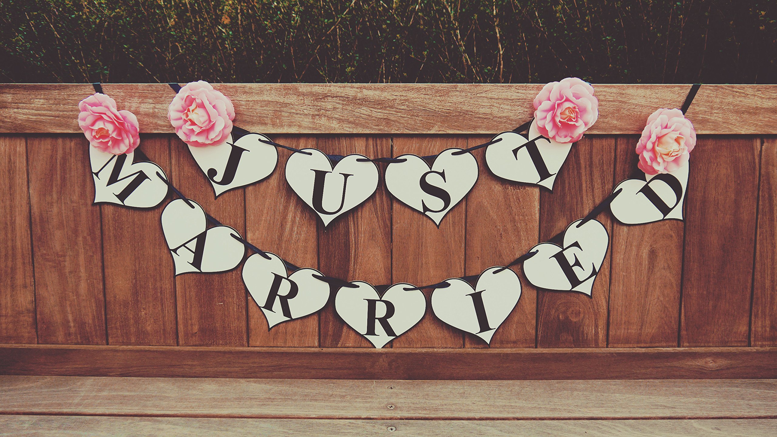 Upper Que original JUST MARRIED Heart Garland 2 consecutive ※ flowers with wedding after-party birthday party photo props Photo Prop scan
